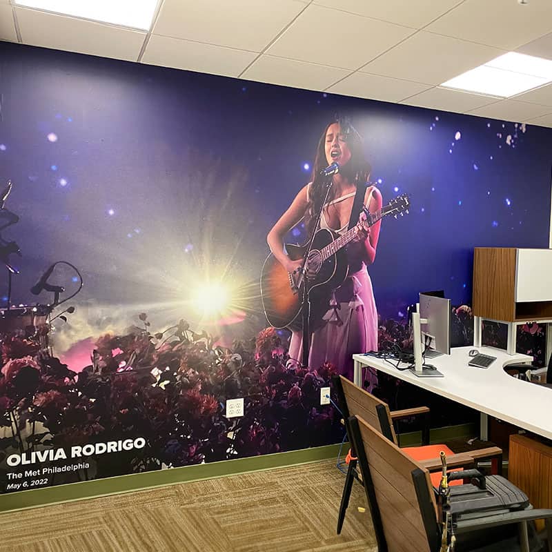 Transform blank spaces into visually dynamic showcases that enhance atmosphere and speak to your venue’s brand identity with wall graphics.