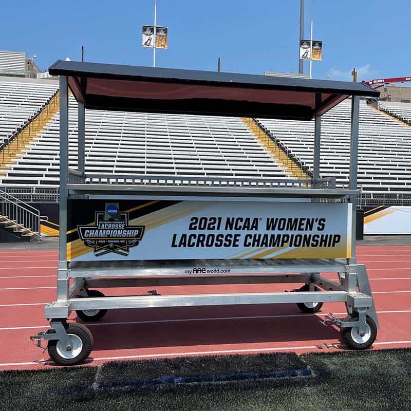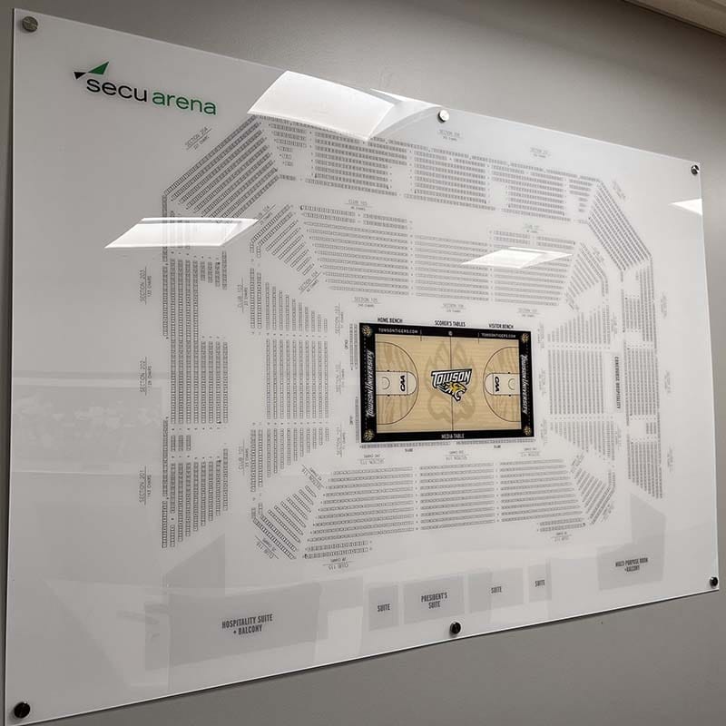 Enhance athletic events with custom branded stadium and arena signage including digital scoreboards, acrylic wayfinding maps, and portable elevated press boxes.